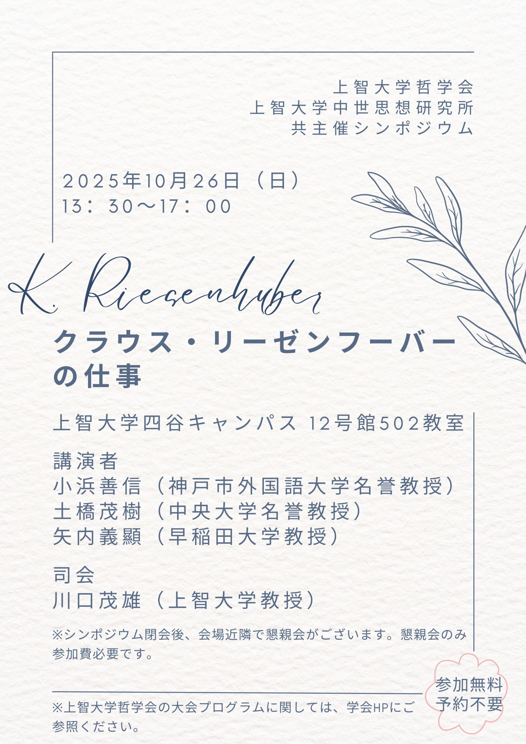 上智大学中世思想研究所から10月26日(日)開催のシンポジウムのご案内をいただきました。